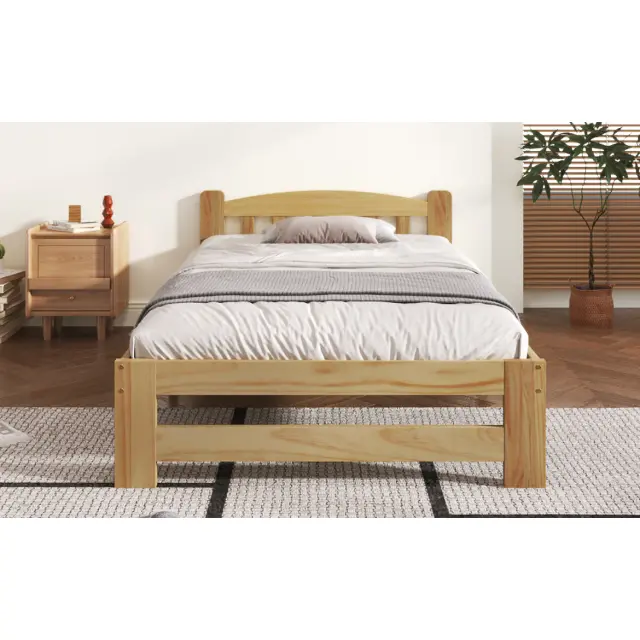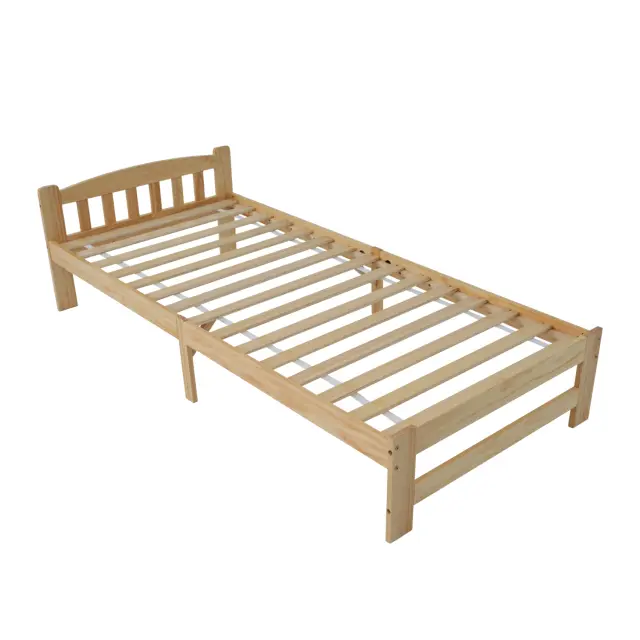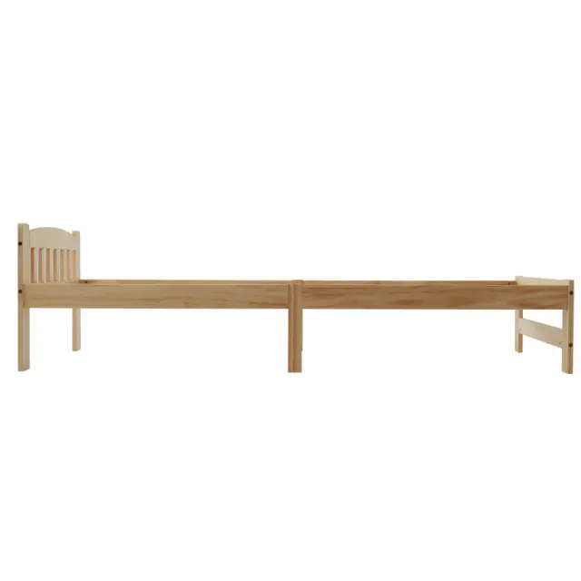 Posteljni okvir iz masivnega lesa, futon, enojni, naravni les z vzglavjem, letveni okvir, 90x200 cm