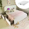 Posteljni okvir Sherp bel z USB, LED, 4 predali, 160x200 cm (z vzmetnico)