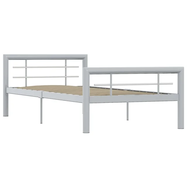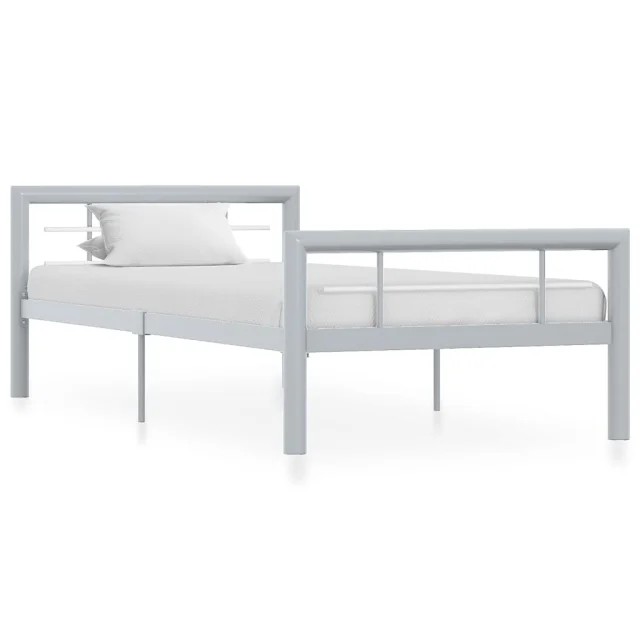 Posteljni okvir siv in bel kovinski 90x200 cm