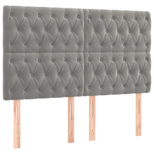 Posteljno vzglavje - Vzglavna omarica 4 kosa svetlo siv 80x7x78/88 cm žamet