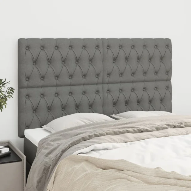 Posteljno vzglavje - Vzglavna omarica 4 kosa temno siv 80x7x78/88 cm blago
