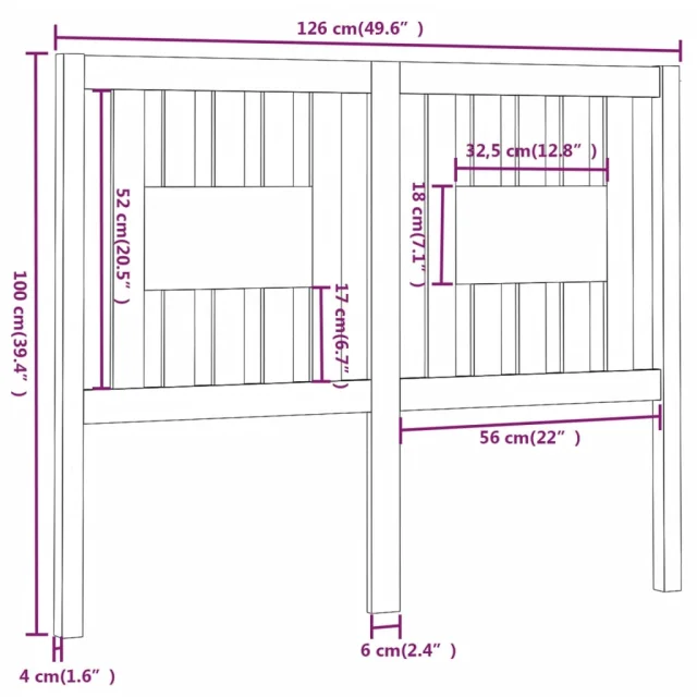 Posteljno vzglavje - Vzglavna omarica - Nočna omarica črno 126x4x100 cm trdna borovina