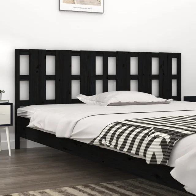 Posteljno vzglavje - Vzglavna omarica - Nočna omarica črno 205,5x4x100 cm trdna borovina