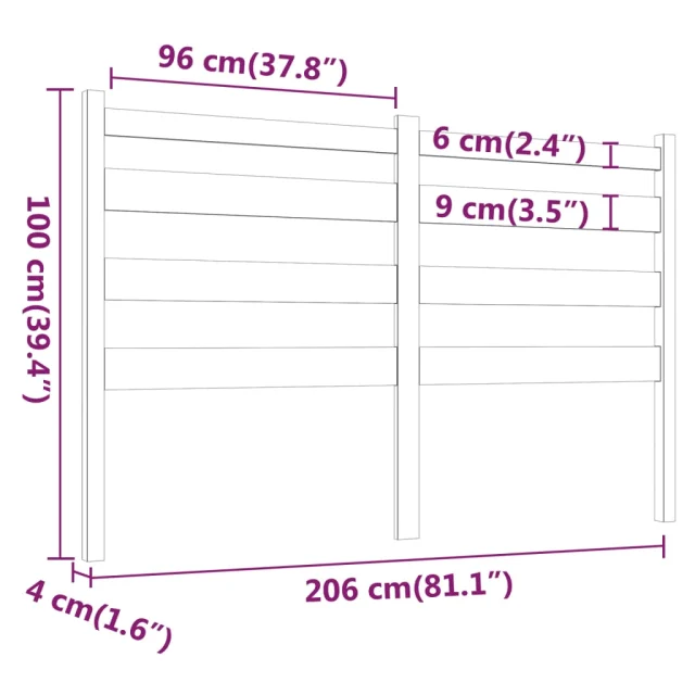 Posteljno vzglavje - Vzglavna omarica - Nočna omarica črno 206x4x100 cm trdna borovina