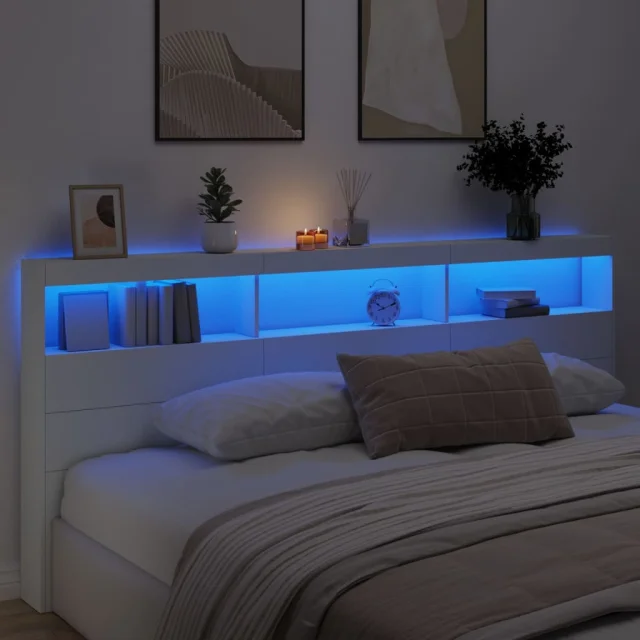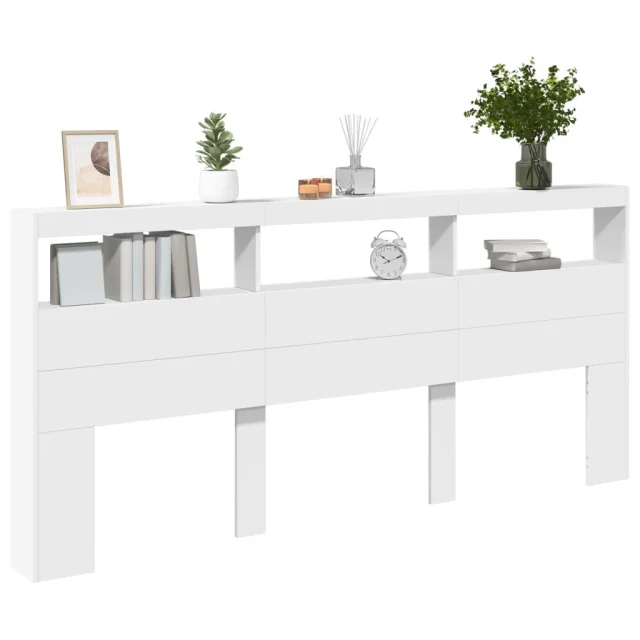 Posteljno vzglavje - Vzglavna omarica - Nočna omarica LED bela 220x17x102 cm