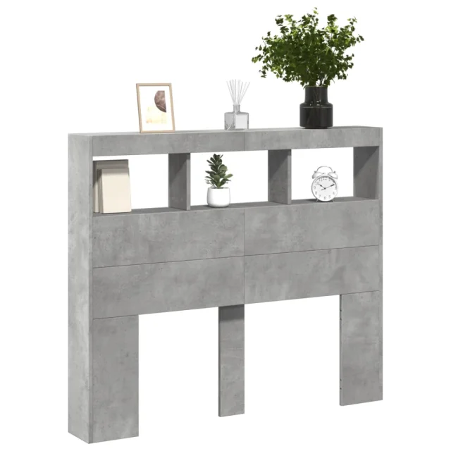 Posteljno vzglavje - Vzglavna omarica - Nočna omarica LED betonsko siva 120x17x102 cm