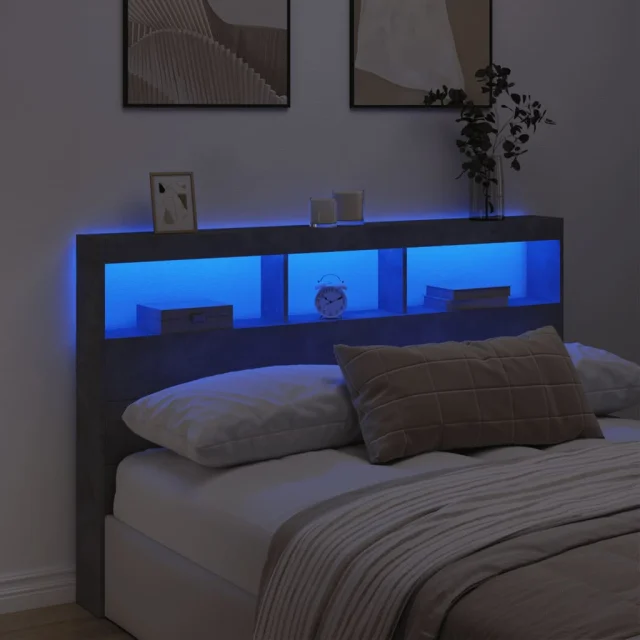 Posteljno vzglavje - Vzglavna omarica - Nočna omarica LED betonsko siva 160x17x102 cm