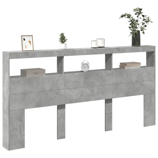 Posteljno vzglavje - Vzglavna omarica - Nočna omarica LED betonsko siva 200x17x102 cm