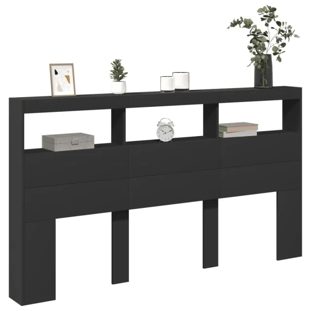 Posteljno vzglavje - Vzglavna omarica - Nočna omarica LED črna 180x17x102 cm