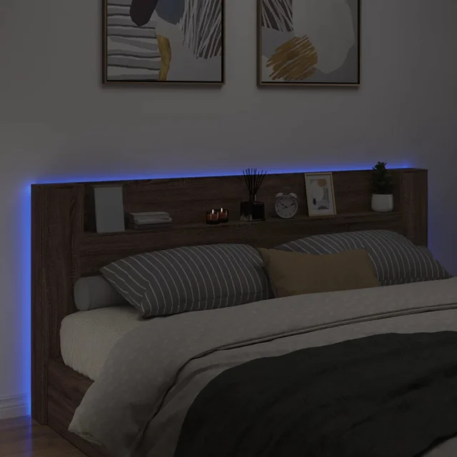 Posteljno vzglavje - Vzglavna omarica - Nočna omarica LED rjavi hrast 220x16,5x103,5 cm