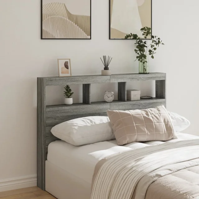 Posteljno vzglavje - Vzglavna omarica - Nočna omarica LED siva sonoma 140x17x102 cm