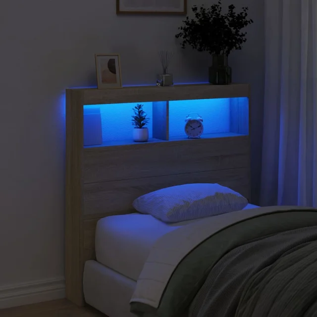 Posteljno vzglavje - Vzglavna omarica - Nočna omarica LED sonoma hrast 100x17x102 cm