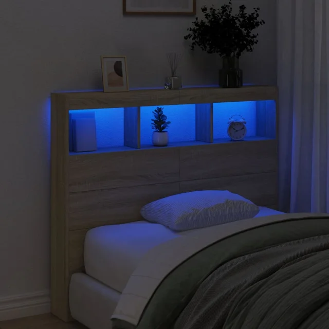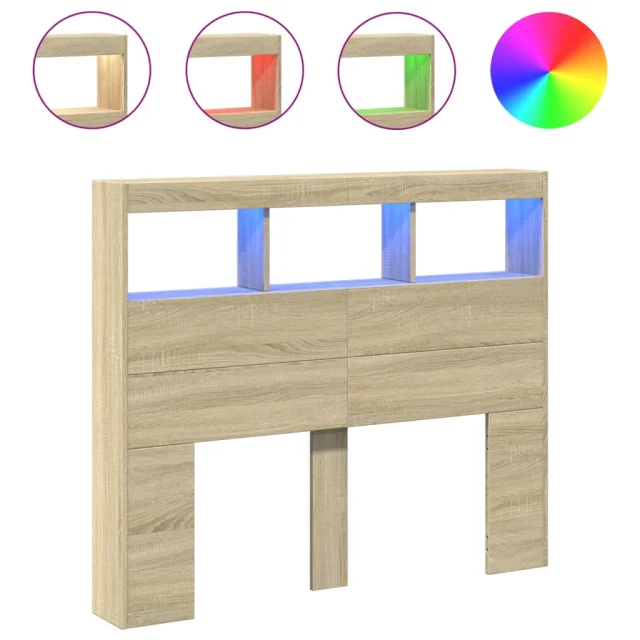 Posteljno vzglavje - Vzglavna omarica - Nočna omarica LED sonoma hrast 120x17x102 cm