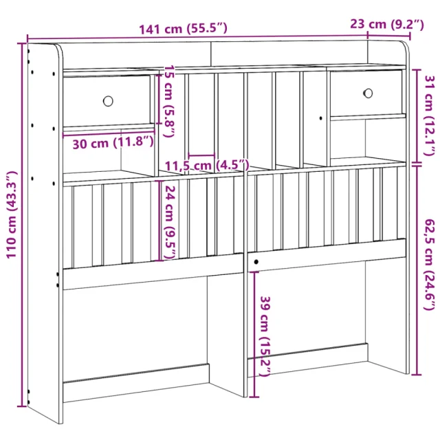 Posteljno vzglavje - Vzglavna omarica - Nočna omarica s predelki 135 cm trdna borovina