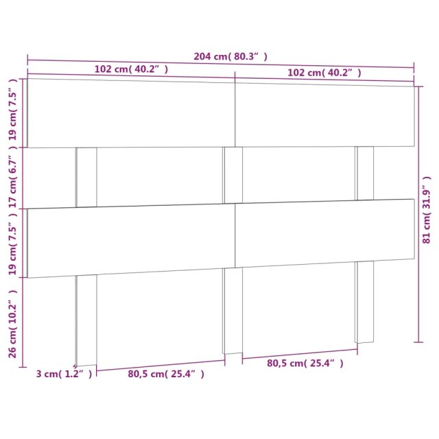 Posteljno vzglavje - Vzglavna omarica - Nočna omarica sivo 204x3x81 cm trdna borovina