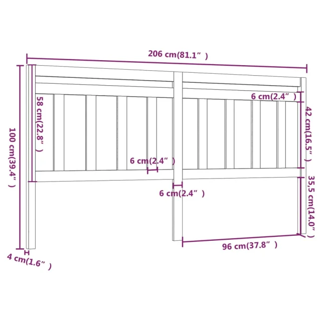 Posteljno vzglavje - Vzglavna omarica - Nočna omarica sivo 206x4x100 cm trdna borovina