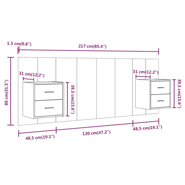 • Dimenzije vzglavja: 120 x 1,5 x 80 cm (D x Š x V)
