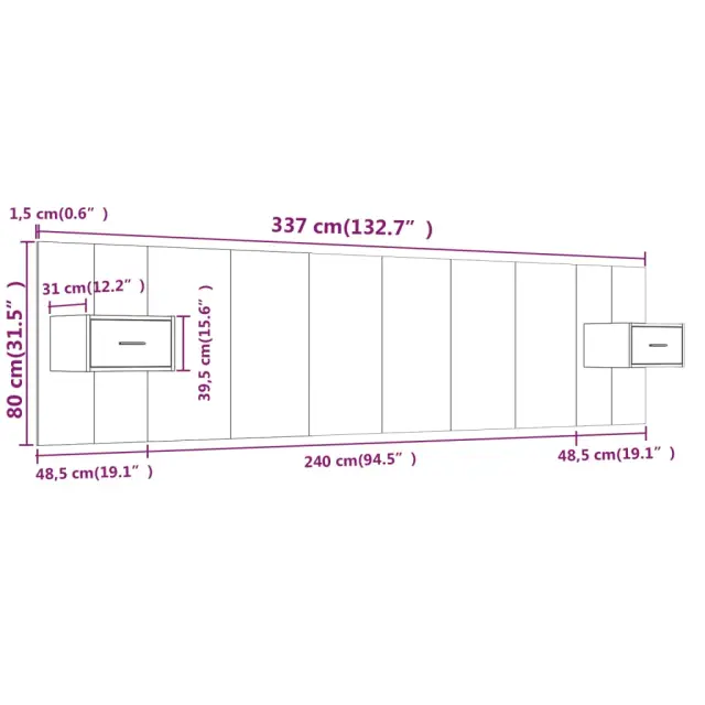 • Dimenzije vzglavja: 240 x 1,5 x 80 cm (D x Š x V)