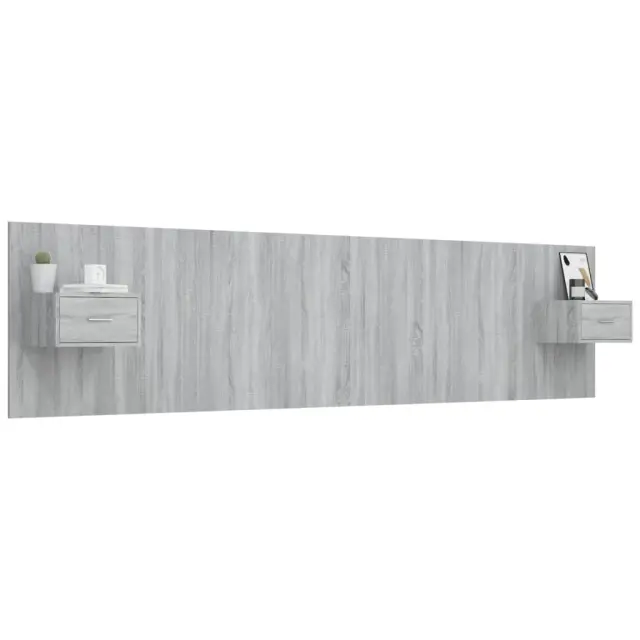 Posteljno vzglavje - Vzglavna omarica - Nočna omarica z omaricami siva sonoma konstruiran les