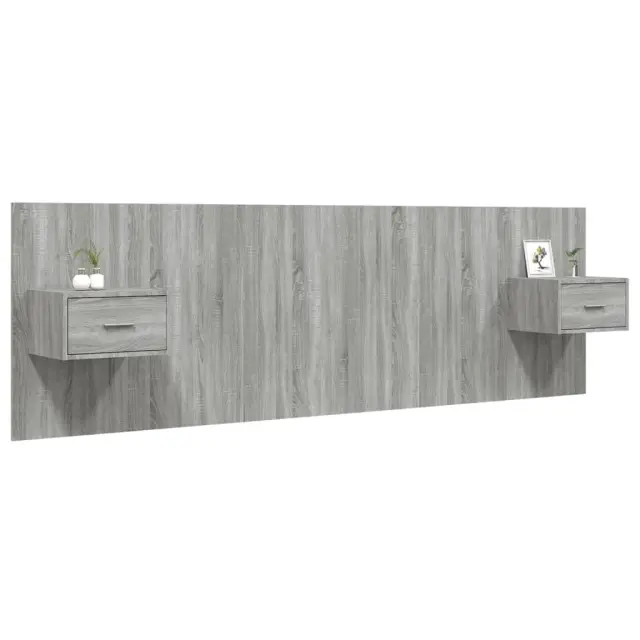 Posteljno vzglavje - Vzglavna omarica - Nočna omarica z omaricami siva sonoma konstruiran les