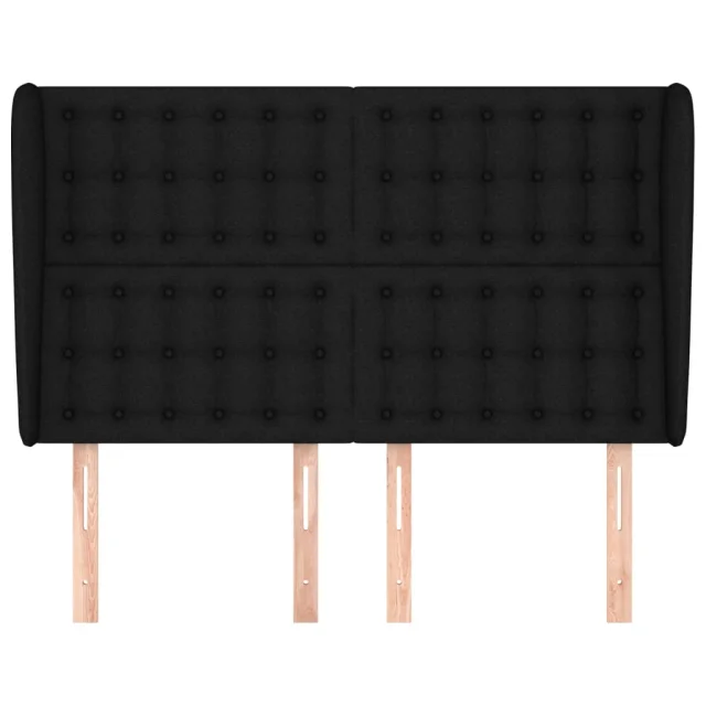 Posteljno vzglavje - Vzglavna omarica - Nočna omarica z ušesi črno 147x23x118/128 cm blago