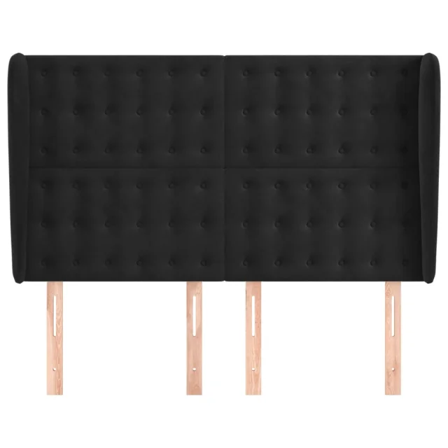 Posteljno vzglavje - Vzglavna omarica - Nočna omarica z ušesi črno 147x23x118/128 cm žamet