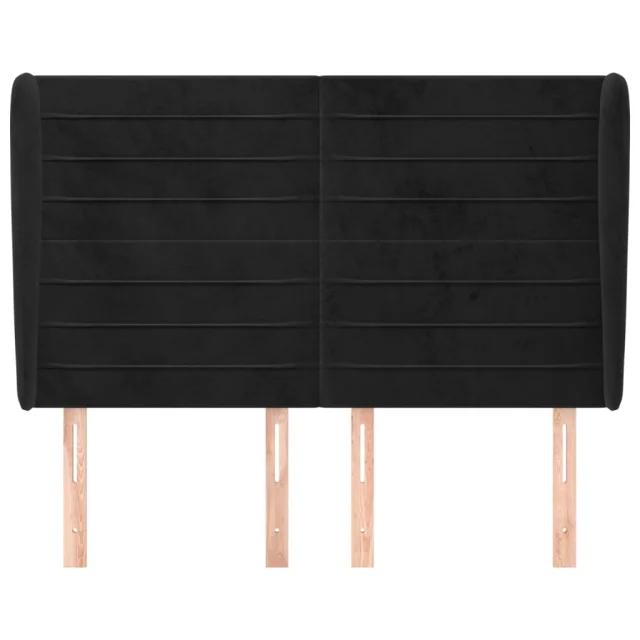 Posteljno vzglavje - Vzglavna omarica - Nočna omarica z ušesi črno 147x23x118/128 cm žamet