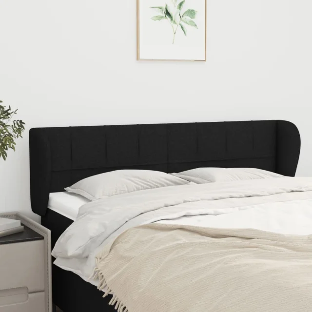 Posteljno vzglavje - Vzglavna omarica - Nočna omarica z ušesi črno 147x23x78/88 cm blago