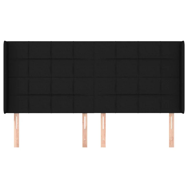 Posteljno vzglavje - Vzglavna omarica - Nočna omarica z ušesi črno 163x16x118/128 cm blago
