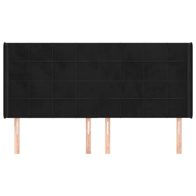 Posteljno vzglavje - Vzglavna omarica - Nočna omarica z ušesi črno 163x16x118/128 cm žamet