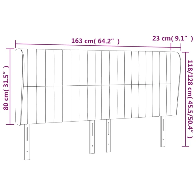 Posteljno vzglavje - Vzglavna omarica - Nočna omarica z ušesi črno 163x23x118/128 cm blago