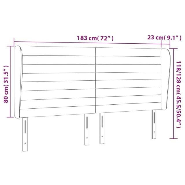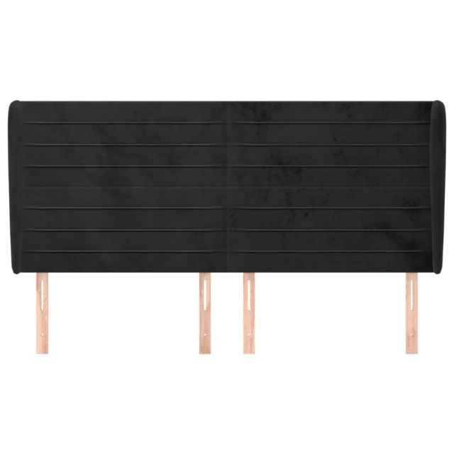 Posteljno vzglavje - Vzglavna omarica - Nočna omarica z ušesi črno 183x23x118/128 cm žamet