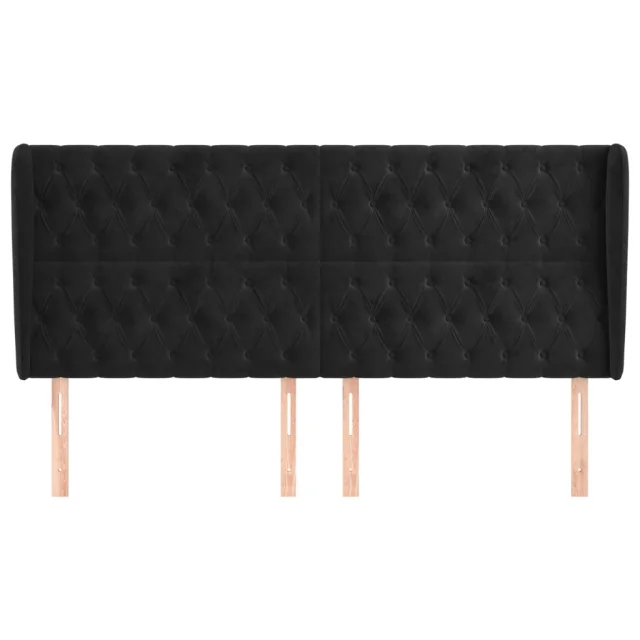 Posteljno vzglavje - Vzglavna omarica - Nočna omarica z ušesi črno 183x23x118/128 cm žamet