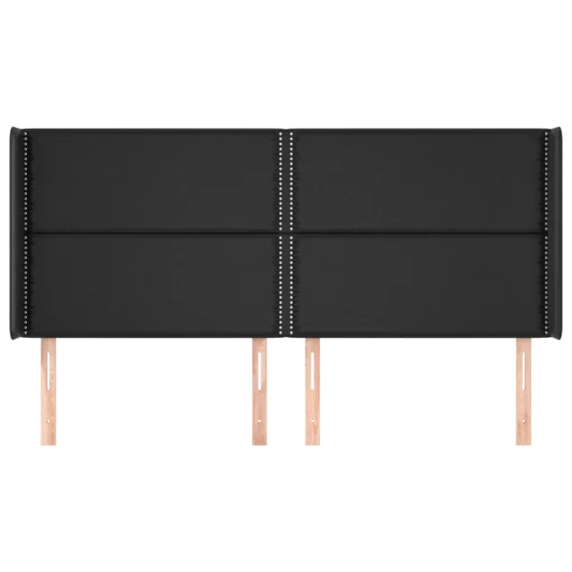 Posteljno vzglavje - Vzglavna omarica - Nočna omarica z ušesi črno 203x16x118/128 cm umetno usnje