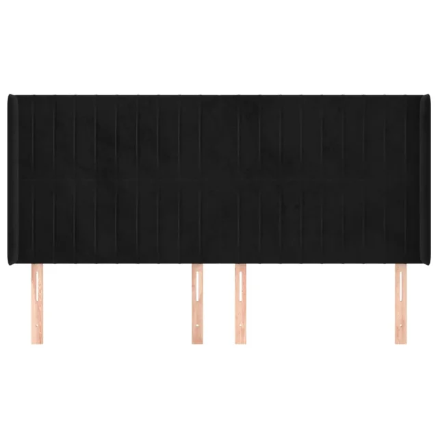 Posteljno vzglavje - Vzglavna omarica - Nočna omarica z ušesi črno 203x16x118/128 cm žamet