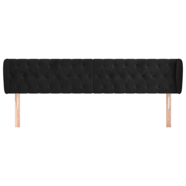 Posteljno vzglavje - Vzglavna omarica - Nočna omarica z ušesi črno 203x23x78/88 cm žamet