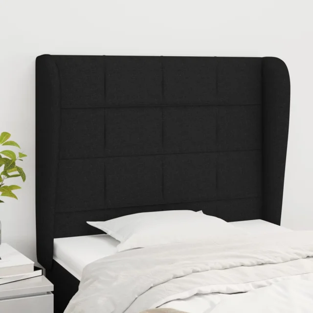 Posteljno vzglavje - Vzglavna omarica - Nočna omarica z ušesi črno 83x23x118/128 cm blago