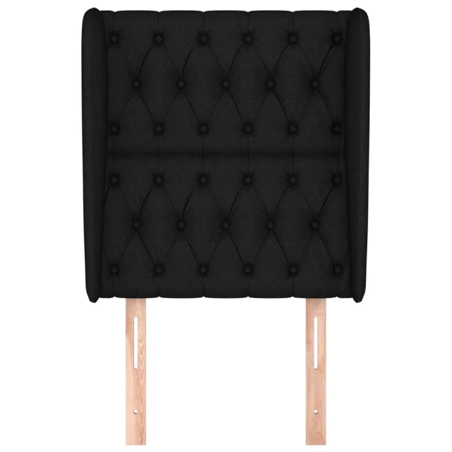 Posteljno vzglavje - Vzglavna omarica - Nočna omarica z ušesi črno 83x23x118/128 cm blago