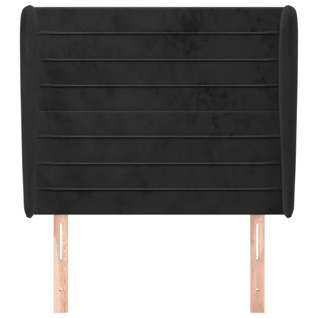 Posteljno vzglavje - Vzglavna omarica - Nočna omarica z ušesi črno 83x23x118/128 cm žamet