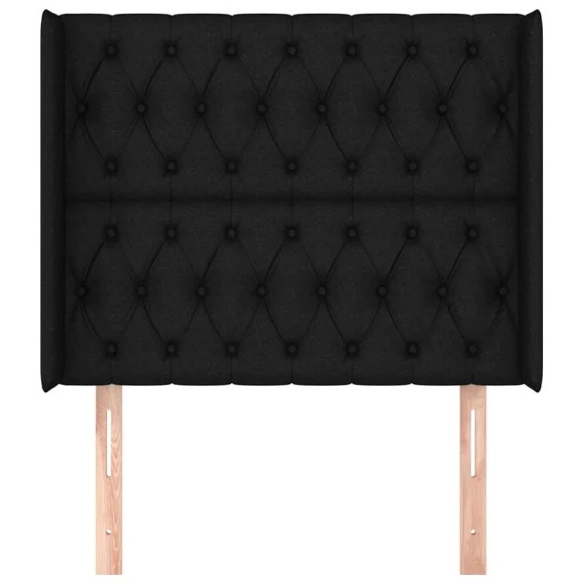 Posteljno vzglavje - Vzglavna omarica - Nočna omarica z ušesi črno 93x16x118/128 cm blago