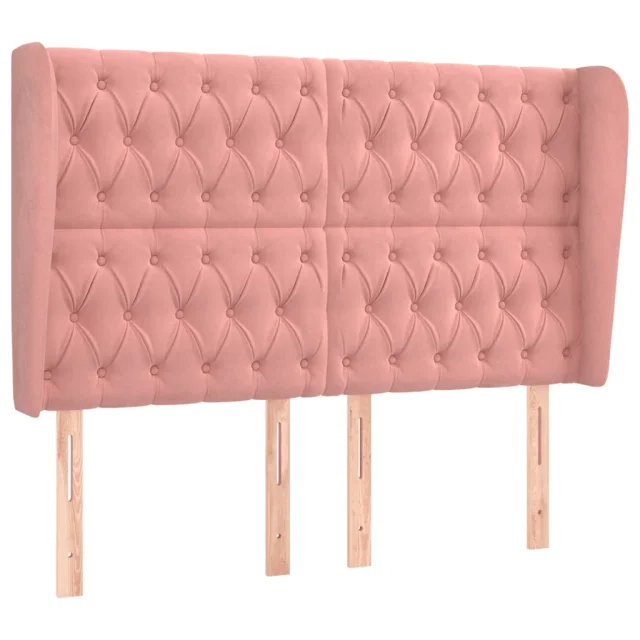 Posteljno vzglavje - Vzglavna omarica - Nočna omarica z ušesi roza 163x23x118/128 cm žamet