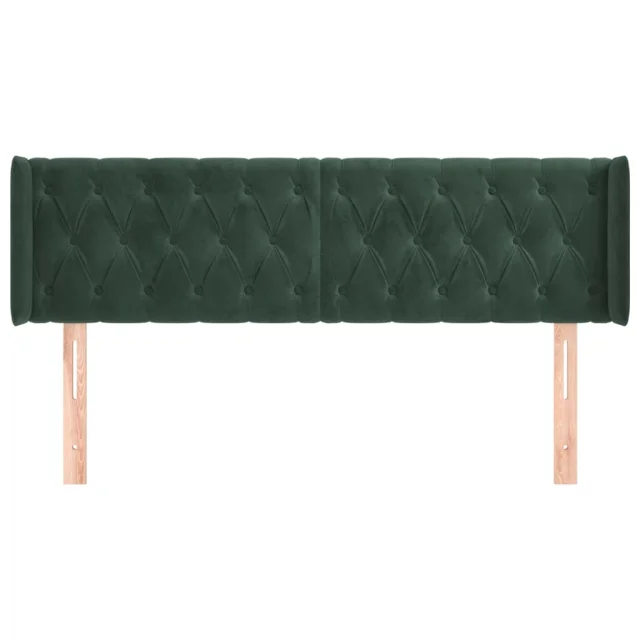 Posteljno vzglavje - Vzglavna omarica - Nočna omarica z ušesi temno zeleno 163x16x78/88 cm žamet