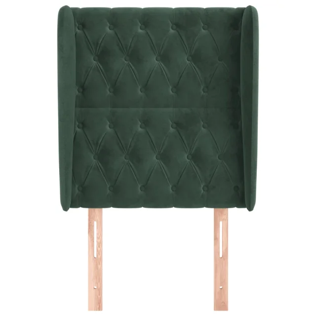 Posteljno vzglavje - Vzglavna omarica - Nočna omarica z ušesi temno zeleno 83x23x118/128 cm žamet