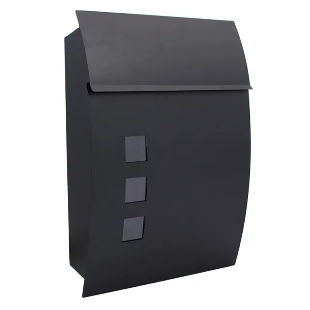 Poštni nabiralnik iz nerjavečega jekla. Horizontalna razporeditev, zaprta s patentirano ključavnico pod cevjo za časopise.