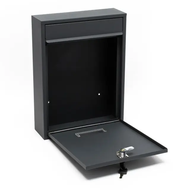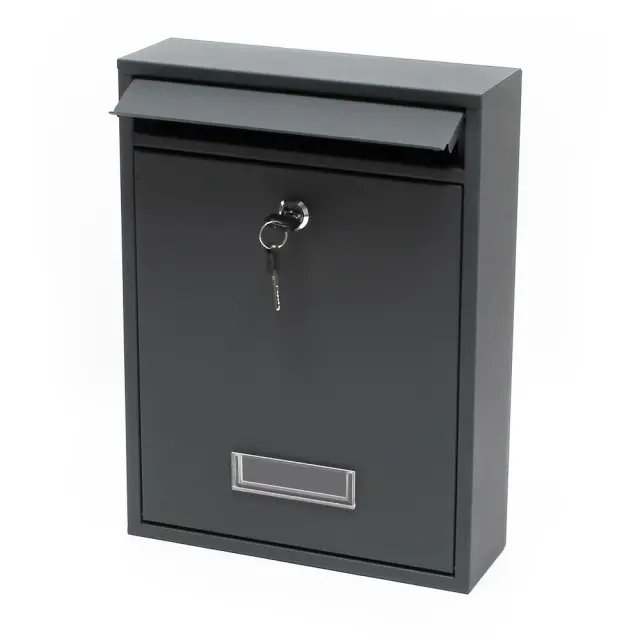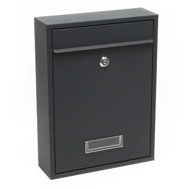 Pisemski nabiralnik iz prevlečenega jekla v brezčasno preprostem videzu. Nabiralnik ima veliko režo za črke, okno z imensko oznako, je mogoče zakleniti in ima dva ključa.