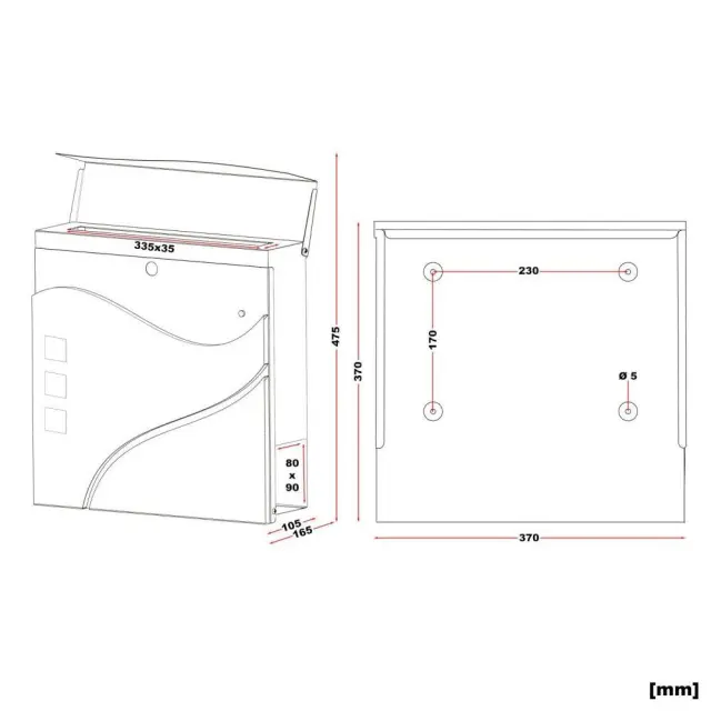 Dizajnerski nabiralnik iz pocinkanega jekla. Vključen je tudi material za namestitev. Na spodnji strani je tudi predal za časopis. Dimenzije 370 x 370 x 105mm