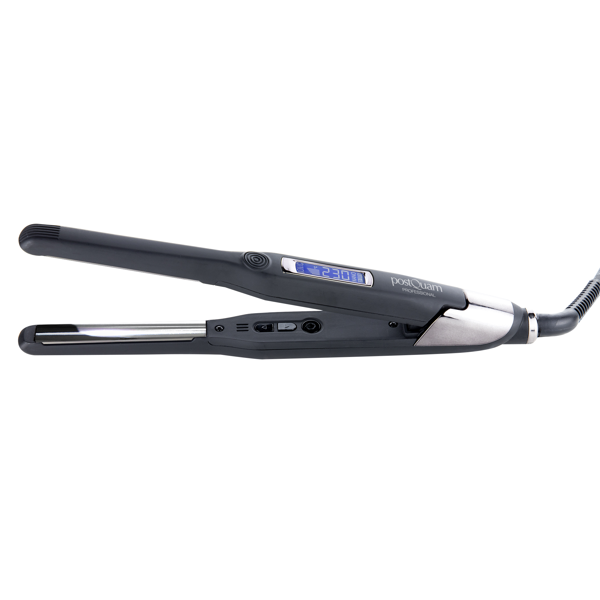 Poseben za natančno delo, s širino plošče 12,9 mm, je najožji ravnalnik v liniji, idealen za dodajanje volumna in ustvarjanje dobro definiranih kodrov.Zaradi svojih dimenzij je idealen za ravnanje šiška in odlična izbira za dolgi lasje, kratki, zaradi česar so mehki in sijoči.SUBLIME PLATINUM najnovejša linija likalnikov za ravnanje las, ki so jo z natančnostjo oblikovali strokovnjaki pri PostQuam Cosmetic, da pokrije vse potrebe, ko gre za dober zaključek friziranja.Vsebuje najnovejše tehnološke dosežke, ki se uporabljajo za profesionalno oblikovalniki, kot je NANO IONSKA TEHNOLOGIJA, ki ne spremenijo naravne oblike lasne povrhnjice. Ima sposobnost preprečiti kodranje las, saj ne ustvarja elektrostatičnega naboja. Nagibne plošče imajo tudi prevleko Silver Mirror Titanium, zaradi katere so izjemno spolzke in zmanjšujejo trenje las. Ta obdelava podaljša življenjsko dobo plošče in je zelo enostavna za čiščenje poleg zagotavljanja enakomerne toplote po celotni plošči. Ima LCD zaslon, kjer prikazuje temperaturo, ki variira od 80 do 230ºC. Zahvaljujoč vgrajenemu notranjemu pomnilniku se samodejno vrne na zadnjo nastavljeno temperaturo, ko vklopite likalnik. Ultra hitro segrevanje keramike. 2,6 m vrtljivi kabel. Univerzalna napetost in samodejni izklop.