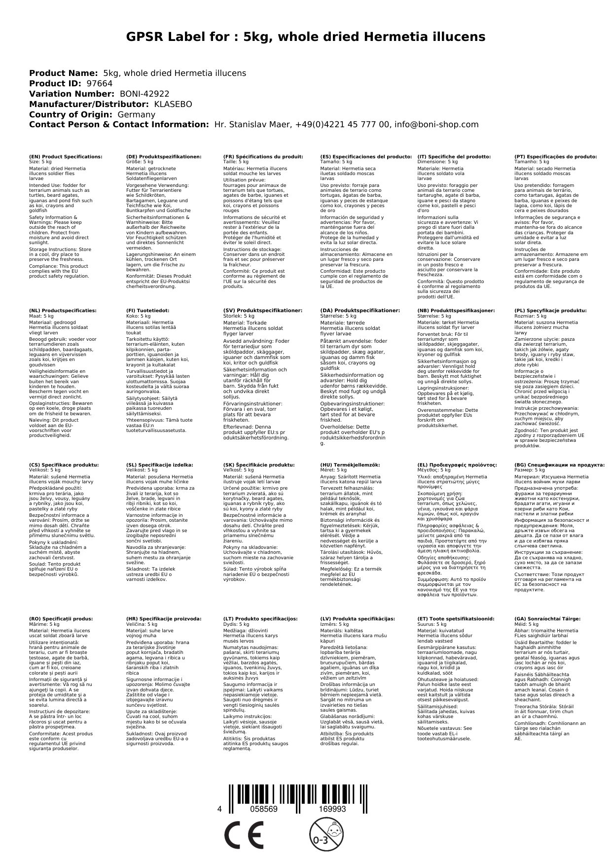 Posušene ličinke vojaške muhe 5kg Hermetia illucens naravno krmilo z beljakovinami za terarijske živali, ribe in ptice