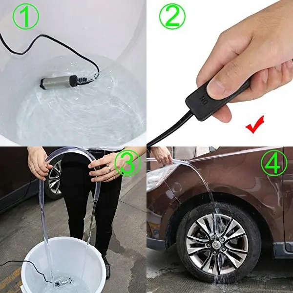 Ta mini črpalka je idealno orodje za odvajanje vode ali dizelskega olja. Da bi to naredili, je črpalka potopljena v tekočino, tako da je dno črpalke popolnoma obdano s tekočino.