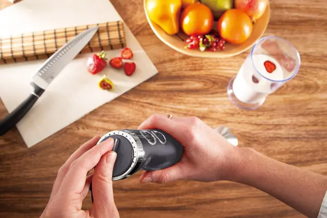 Spoznajte palični mešalnik Carbon Pro BH-9382 znamke Berlinger Haus, zmogljivo napravo z močjo 500 W, zasnovano za enostavno pripravo jedi. Opremljen je z dvema stopnjama zmogljivosti, spremenljivo regulacijo hitrosti in turbo funkcijo, ki omogoča natančno mešanje sadja, zelenjave, omak in pijač. Njegova elegantna in moderna zasnova iz nerjavečega jekla zagotavlja vzdržljivost in enostavno čiščenje. Lahek in kompakten palični mešalnik je enostaven za shranjevanje v vaši kuhinji za vsakodnevno praktično in učinkovito uporabo.